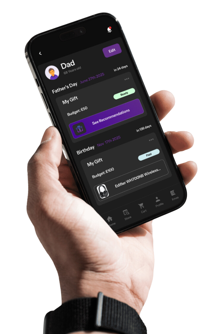Be among the first to experience our AI-powered gift-buying personal assistant. Sign up with your email and get 50% off your first year and a £25 free gift credit